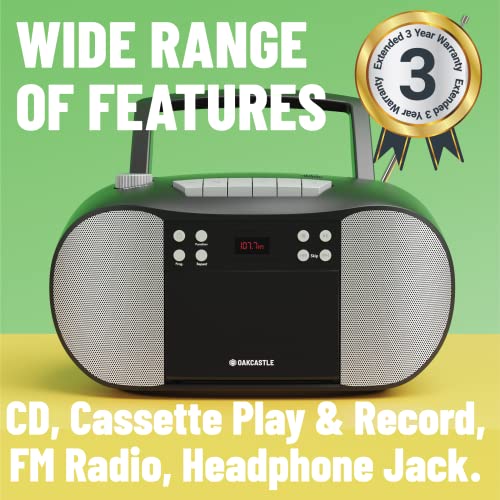 Specification: Oakcastle BCX10 Tragbarer CD-Player Boombox | Kassettenspieler & UKW-Radio | 2.0-Stereo-Sound | 15 Stunden Spielzeit mit…
