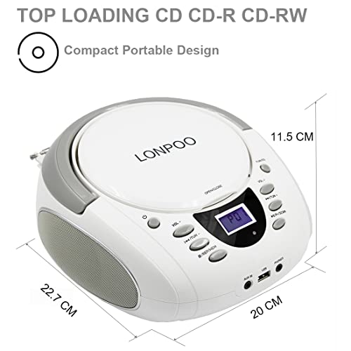 Specification: Tragbarer CD-Player (Weiß), LP-D01 Boombox mit Bluetooth | FM Radio | AUX-IN | Kopfhöreranschluss | USB-Eingang | CD…