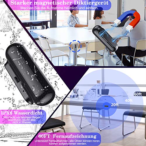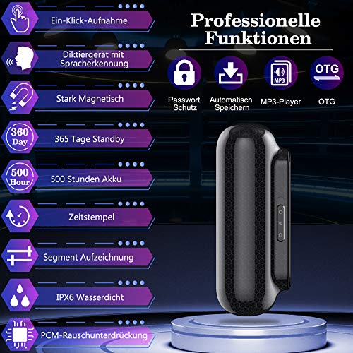 【Magnetischer Mini Diktiergerät】Mini Diktiergerät mit starker magnetischer Absorption kann an jeder Stelle angebracht werden, wodurch die Aufnahme geheim und einfach erfolgt. Die Kennwortschutzeinstellung schützt Ihre Aufnahmedatei (auf dem Computer eingestellt). Dieses kleine Aufnahmegerät ist ideal für Vorträge, Besprechungen, Interviews, Unterricht, Beweismittel usw.