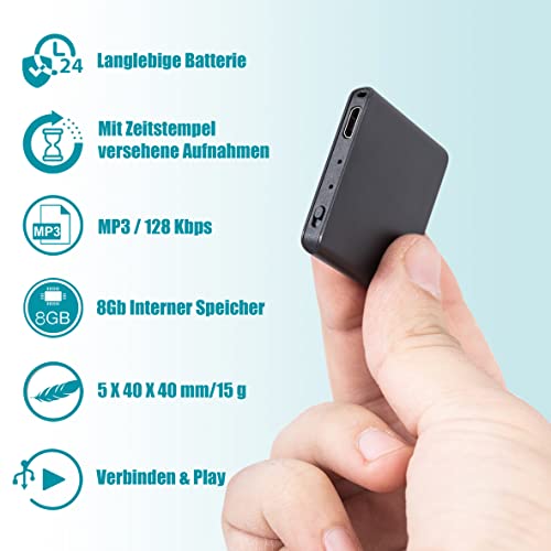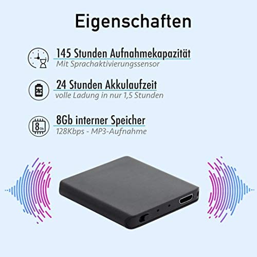 Specification: Einzigartiges Aufnahmegerät – 145 Stunden – Nur 5 mm Dünn – Stimmenaktivierung Diktiergerät – 24 Stunden Akku – MP3…
