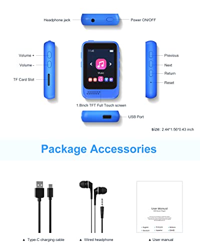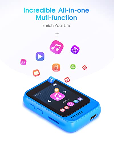 【Hochempfindlicher Voll-Touchscreen】 Dieser Bluetooth-fähige MP3-Player verfügt über einen 1,8-Zoll-Touchscreen und ein IPS-Bildschirmdesign mit Spiegeloberfläche. Kratzfestigkeit. Es kann den gesamten Bildschirm steuern und berühren, sodass Sie den MP3-Player wie ein Smartphone bedienen können.