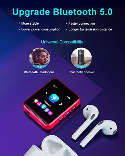 Die Bluetooth 5.0-Technologie des mp3 macht die Verbindung zu Ihren Kopfhörern oder Lautsprechern einfacher und schneller mit den 10 Metern in offenen Bereichen.