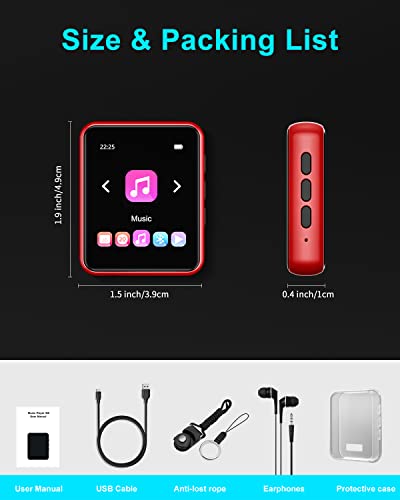 【Hochempfindlicher Voll-Touchscreen】 Dieser Bluetooth-MP3-Player verfügt über einen 1,8-Zoll-Touchscreen und ein IPS-Bildschirmdesign mit Spiegeloberfläche. Kratzfestigkeit. Es kann den gesamten Bildschirm steuern und berühren, sodass Sie den MP3-Player wie ein Smartphone bedienen können.