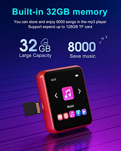 Interne 32 GB und erweiterbarer Speicher bis zu 128 GB externe TF-Karte mit dem mitgelieferten Micro-SD-Steckplatz, Sie können bis zu 8000 Songs überall in einen Musikplayer im Taschenformat aufnehmen.