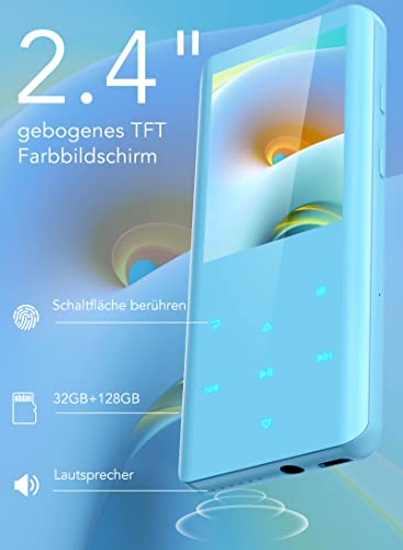 ♫ 【2,4 Zoll TFT Farbbildschirm, 32+128GB Großer Speicher】 Klares und schönes Display, geringer Stromverbrauch, mehr Energieeinsparung. Durch das gebogene Bildschirmdesign fühlt es sich eleganter und einfacher zu bedienen an. Der MP4-Player kommt mit 32GB Speicher. Außerdem unterstützt 128GB TF-Karte (Enthält keine TF-Karte), wodurch Musik in großen Mengen gespeichert werden kann.