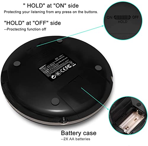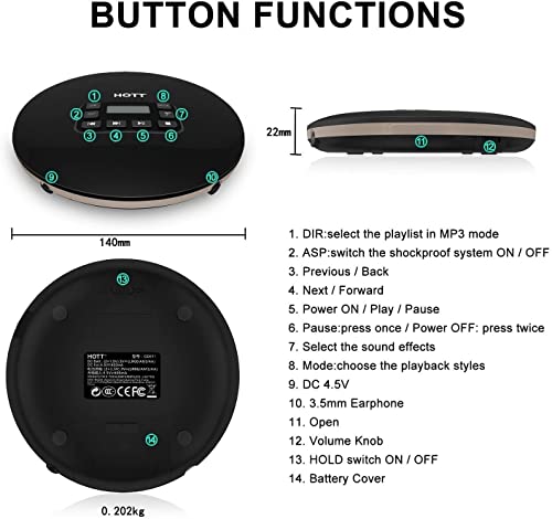 Specification: CCHKFEI Tragbarer CD Player mit LCD-Display Kopfhörern Kompakter Anti Shock-Schutz Persönlicher Kleiner Discman CD…