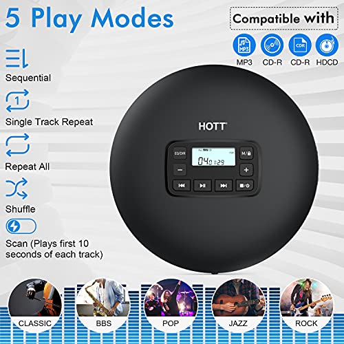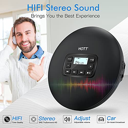 Specification: HOTT CD204 Tragbarer CD-Player für Reisen zu Hause und mit dem Auto mit Stereo-Kopfhörern und Anti-Shock-Schutz (schwarz…