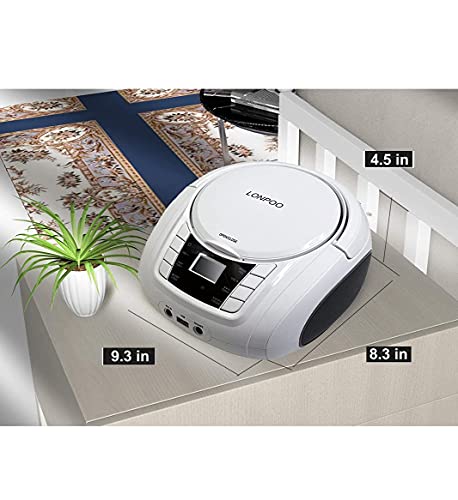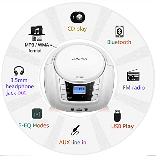 🎁【Vielseitige Häfen & Funktionen】① USB-Eingang zum Lesen aller Ihrer MP3- / WMA-Dateien; ②3.5mm AUX-Eingang zum Anschließen der kabelgebundenen Geräte. ③Unterstützen Sie den Stereoausgang der Kopfhörerbuchse des CD-Players, um Kindern das Lernen zu erleichtern und andere nicht zu stören. ④Mit Speicherfunktion, Tastenwahl zwischen Play-Modus, Vorheriger / Nächster Song, 3 Wiederholungsmodi (einzeln/alle/zufällig) und 5 Equalizer-Modus, (FLAT/ROCK/CLASSIC/POP/JAZZ).