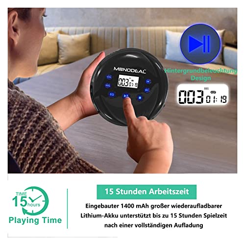 Specification: MONODEAL Tragbare CD Player, 2021 Wiederaufladbarer CD Player mit Kopfhörer, Tragbar Discman CD Player mit LCD-Display…