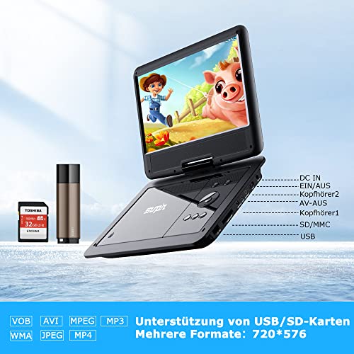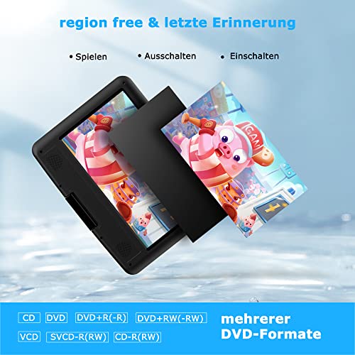 🏆【Regions-Free, Multi-Formate】—SUNPIN tragbarer DVD-Player unterstützt CD, DVD, DVD+R(-R), DVD+RW(-RW), VCD, SVCD-R(RW), CD-R(RW) aus allen Regionen außer Blu-ray und kompatibel mit Multimedia-Dateien über USB und SD-Karte (MAXFAT32GB), wie VOB, AVI, MPEG1, MP3, WMA, JPEG.