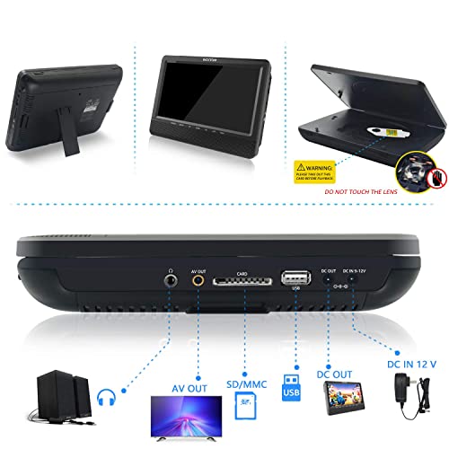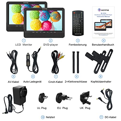 Specification: WONNIE 2023 Modelle 10.1″ Auto DVD Player 2 Monitore Auto Tragbarer DVD Player Kopfstütze Fernseher 2 Bildschirm mit 5 Stunden Akku, unterstützt USB/SD/AV IN & Out (1Host +1 Slave)