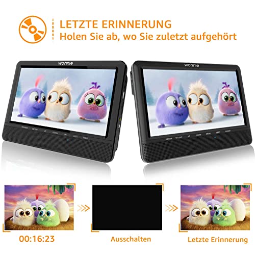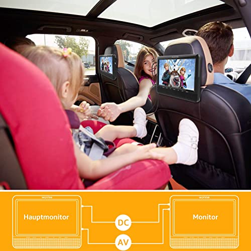 WONNIE 2023 Modelle 10.1″ Auto DVD Player 2 Monitore Auto Tragbarer DVD Player Kopfstütze Fernseher 2 Bildschirm mit 5 Stunden Akku, unterstützt USB/SD/AV IN & Out (1Host +1 Slave)