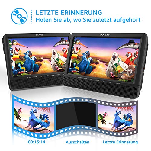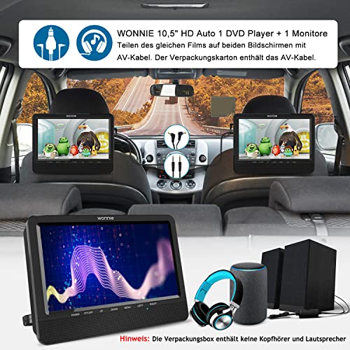 WONNIE 2022 Modelle 10. 5″ DVD Player Auto 2 Bildschirme Tragbare DVD Player 4 Stunden Spielzeit mal 1024 * 600 HD Kopfstütze Fernseher, Unterstützung für USB/SD, AV IN/Out