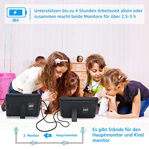 ❤【10.5″ Auto Player+Monitor】: Auflösung des Bildschirms bis zu 1024 * 600, eingebauter Akku für Haupt DVD Player, Unterstützung für eine Betriebsdauer von 4 bis 5 Stunden oder 2,5 bis 3 Stunden für 2 Monitore dvd player, die über den mitgelieferten AV-Anschluss denselben Bildschirm gemeinsam nutzen & Gleichstromkabel.