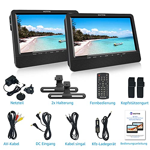 Specification: WONNIE 2022 Modelle 10. 5″ DVD Player Auto 2 Bildschirme Tragbare DVD Player 4 Stunden Spielzeit mal 1024 * 600 HD Kopfstütze Fernseher, Unterstützung für USB/SD, AV IN/Out