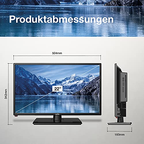 Cello C2220FSDE 22″ (54,6 cm Diagonale) Full HD LED TV mit eingebautem DVD Player und DVBT2 S2 Triple Tuner Neues 2021 Modell, Schwarz