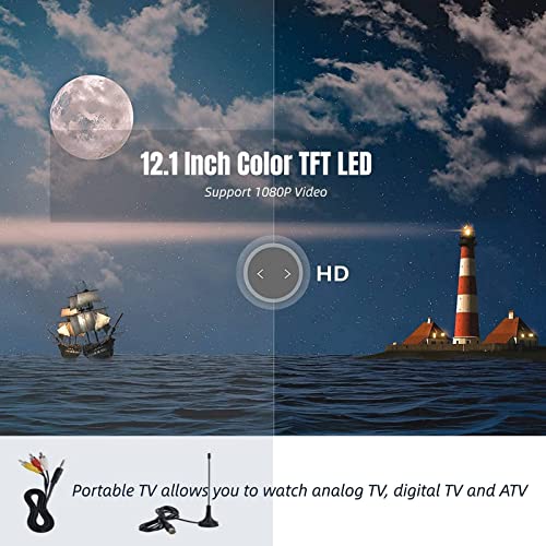 Specification: Garsent Tragbar Fernseher, 12.1 Zoll HD Digital TV Multimedia Player Auto Reisefernsehen mit Stereo Lautsprechern, AV…