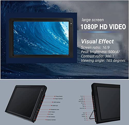 【HD-Bildqualität】: Dieses tragbare Fernsehgerät verwendet einen hochauflösenden TFT-LED-Farbbildschirm von 1024 × 600, genießt hochauflösende Bilder im 16:9-Format und die beste Bildqualität, unterstützt die Dekodierung mit hoher Bitrate, unterstützt 1080P-Video und bietet a realistisches Videoerlebnis.